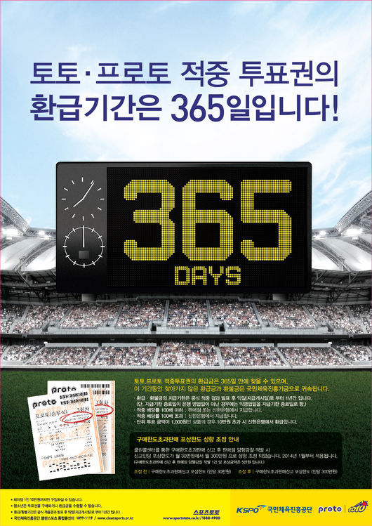 '토토 참가자 여러분, 환불금 및 적중상금은 365일 이내에 꼭 찾아가세요.'