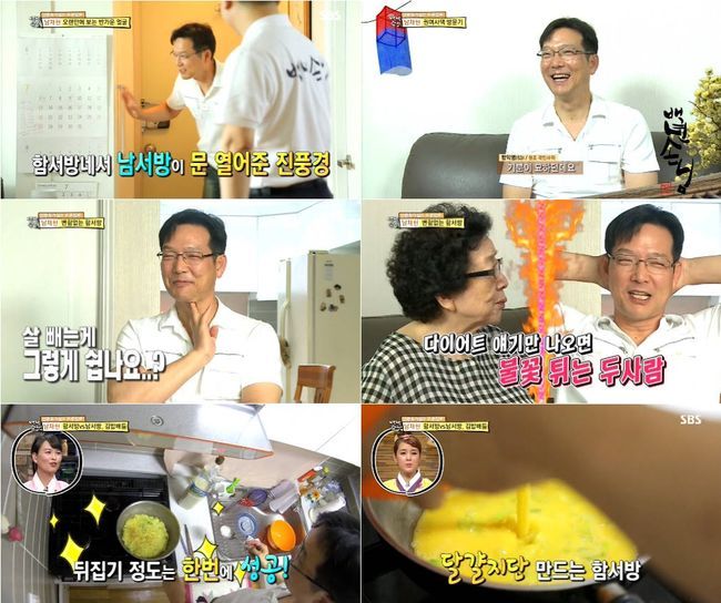 이후 함익병이 등장했다. 유난히 날렵해진 모습이 눈길을 끌었다. 6kg 체중 감량이 이유였다. 철부지 아이처럼 천진난만하고 발랄한 면모는 여전했다. 무심코 탁자 위에 발을 올려놓았다가 내리는가 하면, 다이어트를 두고 권 여사와 티격태격해 웃음을 선사했다. 그러면서도 의외의 살림 솜씨를 보여줘 어수룩한 남재현과 비교됐다.