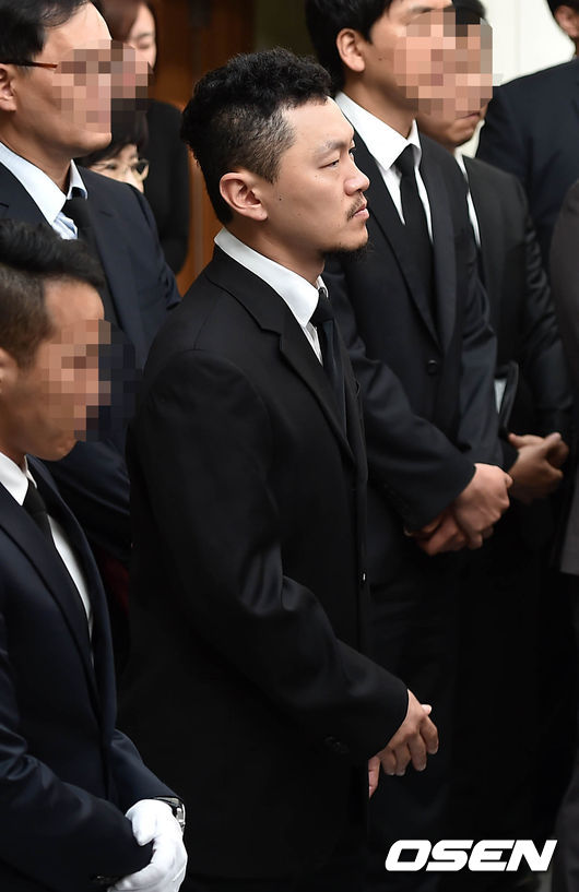 가수 양동근이 발인식에 참석해 애도를 하고 있다.
