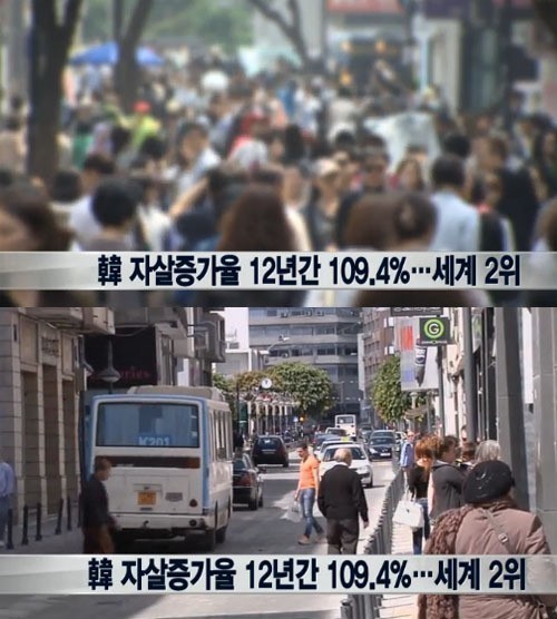 4일(현지시간) 세계보건기구(WHO)는 스위스 제네바에서 자살 문제 관련 보고서를 공개해 관심을 모았다. 이에 따르면 172개 회원국 가운데 인구 30만 명 이상 국가들의 2000~2012년 자살 사망률을 비교한 결과, 한국의 자살 증가율이 가장 심각한 문제로 분석됐다.