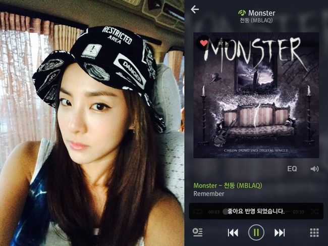 공개된 사진 속에는 산다라박이 직접 캡처한 천둥의 솔로곡 재생 화면이 담겨있다. 산다라박은 천둥의 노래에 '좋아요'를 누르는 등 깨알같은 애정을 과시해 훈훈함을 자아내고 있다.