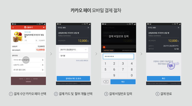 카카오페이의 가장 큰 특징은 기존 모바일 결제의 복잡한 결제 단계를 획기적으로 줄여 사용자 편의성은 높이고 결제 포기율은 낮추는 효과를 거둘 수 있다는 점이다.