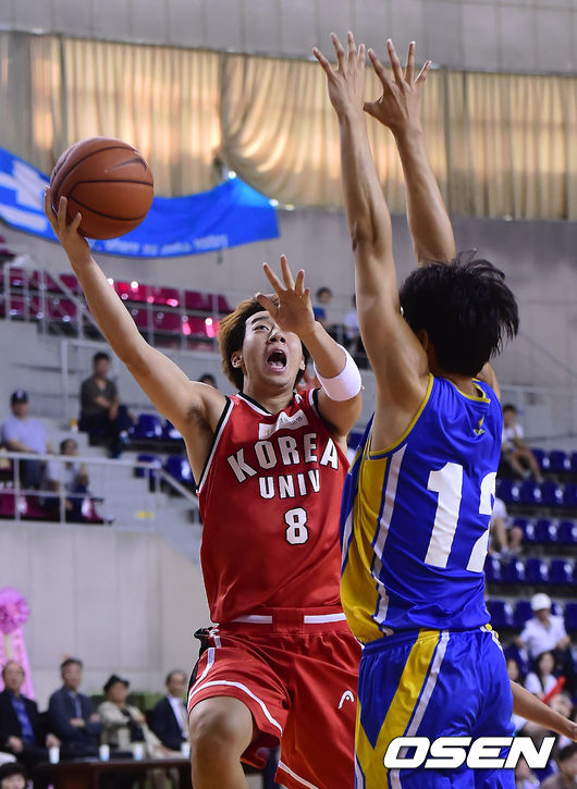 5일 오후 경기도 용인실내체육관에서 열린 '2014 KB국민은행 대학농구리그 챔피언결정전' 2차전 경기, 1쿼터 고려대 김지후가 레이업슛을 시도하고 있다.