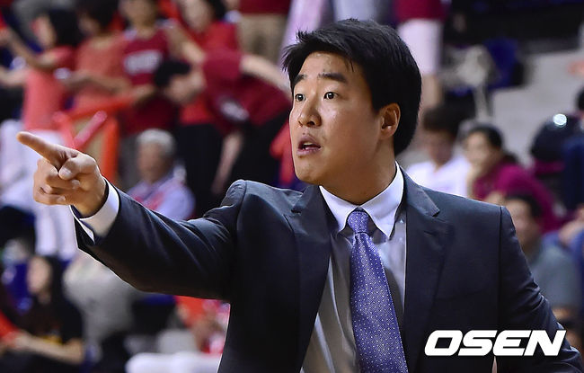 5일 오후 경기도 용인실내체육관에서 열린 '2014 KB국민은행 대학농구리그 챔피언결정전' 2차전 경기, 연세대 은희석 감독이 작전지시를 하고 있다.