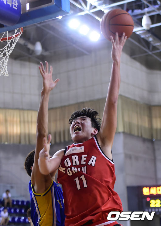 5일 오후 경기도 용인실내체육관에서 열린 '2014 KB국민은행 대학농구리그 챔피언결정전' 2차전 경기, 2쿼터 고려대 강상재가 레이업슛을 시도하고 있다.