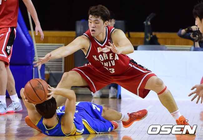 5일 오후 경기도 용인실내체육관에서 열린 '2014 KB국민은행 대학농구리그 챔피언결정전' 2차전 경기, 2커터 고려대 이승현이 연세대 김기윤의 공을 스틸하고 있다.