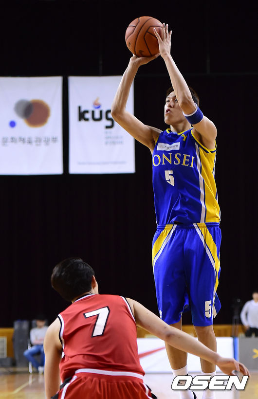5일 오후 경기도 용인실내체육관에서 열린 '2014 KB국민은행 대학농구리그 챔피언결정전' 2차전 경기, 3쿼터 연세대 최준용이 점프슛을 시도하고 있다.