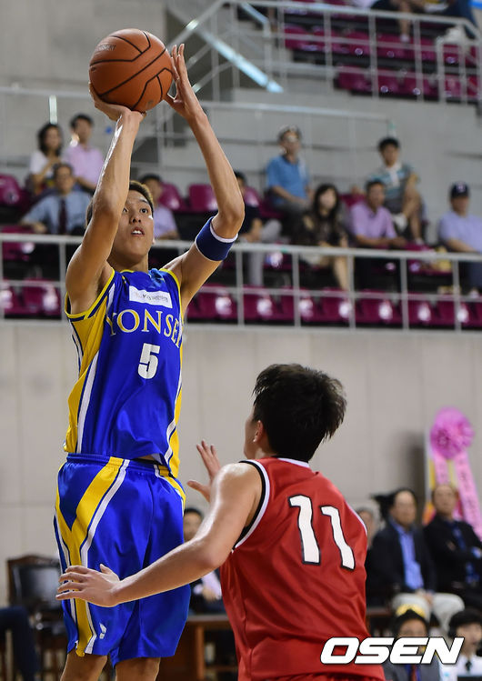 5일 오후 경기도 용인실내체육관에서 열린 '2014 KB국민은행 대학농구리그 챔피언결정전' 2차전 경기, 3쿼터 연세대 최준용이 점프슛을 시도하고 있다.