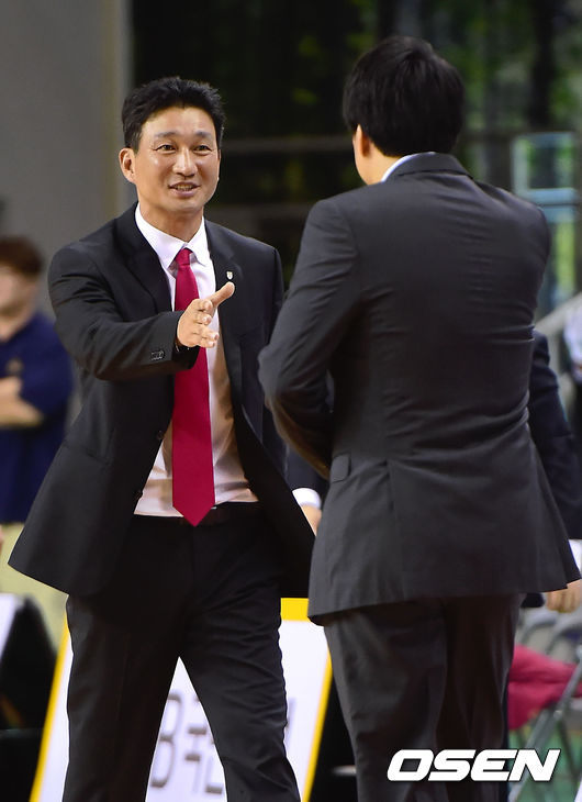 승리를 거둔 고려대 이민형 감독이 연세대 은희석 감독과 악수를 나누고 있다. / youngrae@osen.co.kr