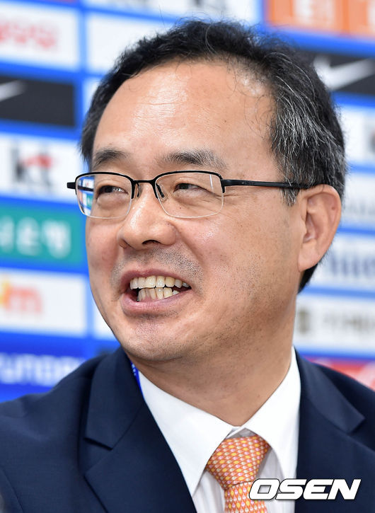 이용수 기술위원장이 취재진의 질문을 듣고 있다.