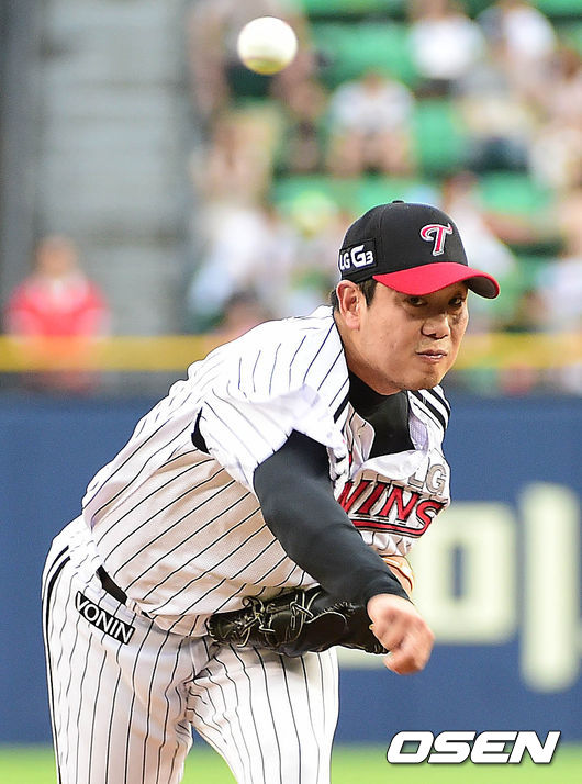 LG 선발 류제국이 힘차게 공을 뿌리고 있다.