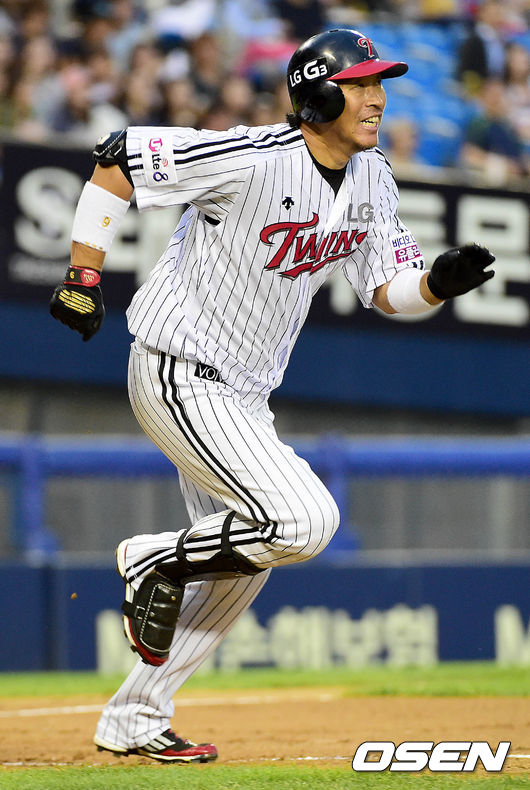 2회말 LG 공격 1사 1루 상황 이병규가 우전안타를 날리고 1루를 향해 뛰고 있다.