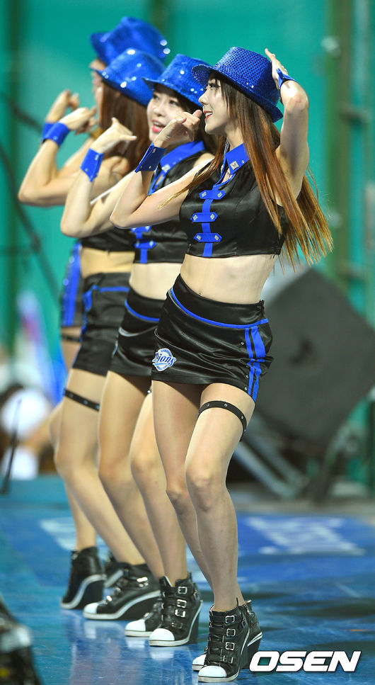 5일 오후 대구구장에서 열린 '2014 한국야쿠르트 세븐 프로야구' 삼성 라이온스와 한화 이글스의 경기,삼성 치어리더가 멋진 무대를 펼치고 있다