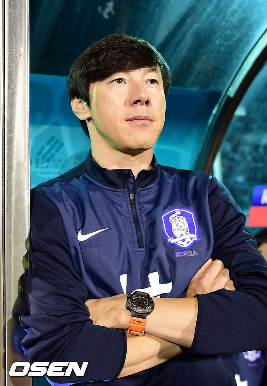 5일 오후 경기 부천종합운동장에서 열린 대한민국과 베네수엘라의 평가전, 신태용 코치가 그라운드를 바라보고 있다.
