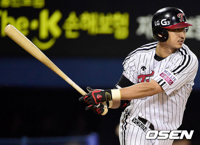 6회말 LG 공격 2사 만루 상황 박용택이 2타점 우전 적시타를 날리고 있다.