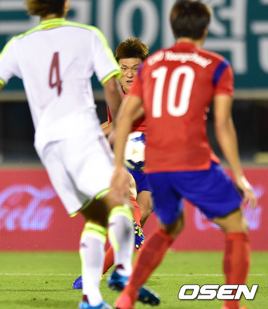 전반 한국 이명주가 골을 성공시키고 있다.