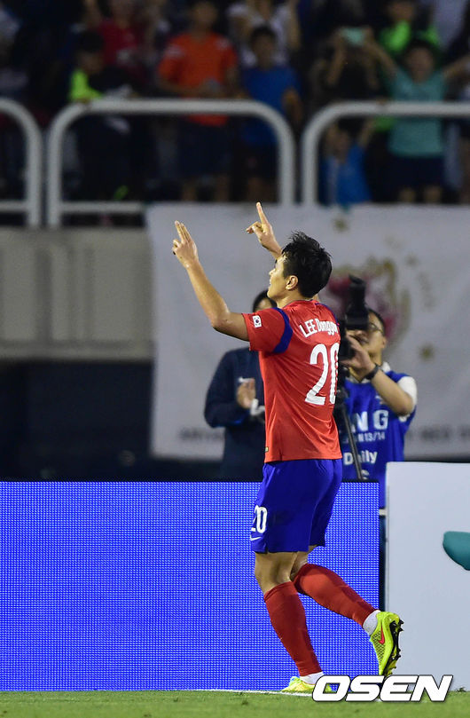 후반 한국 이동국이 자신의 두번째 골을 성공시키고 환호하고 있다.