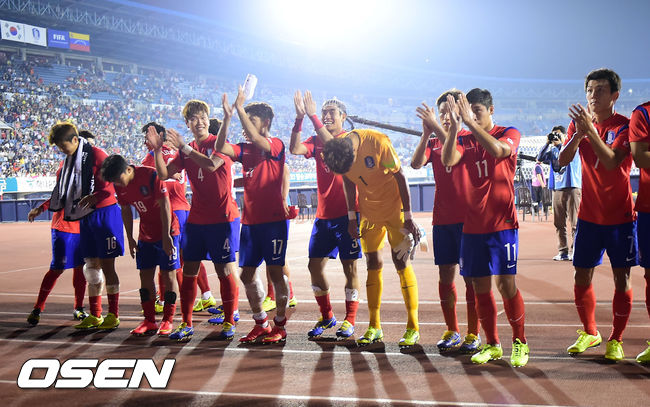경기를 마치고 한국 축구대표팀 선수들이 박수를 보내고 있다. / rumi@osen.co.kr