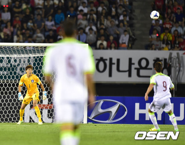 전반 한국 골키퍼 김진현이 첫 골을 허용하고 있다. /sunday@osen.co.kr