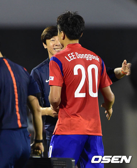 전반 한국 신태용 코치가 교체되는 이동국을 격려하고 있다. /sunday@osen.co.kr