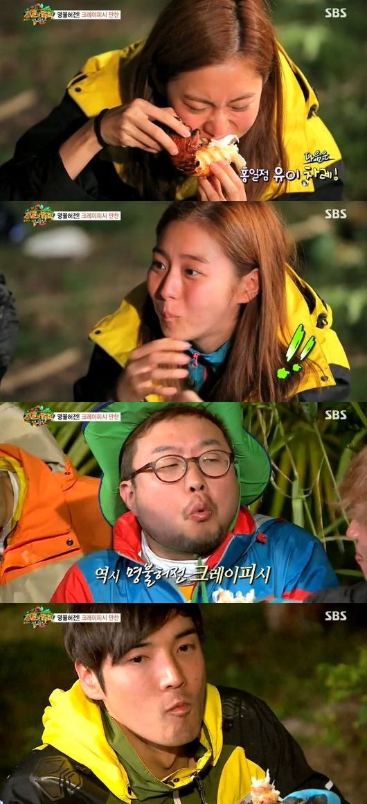 김병만이 이끄는 대로 잘 구워진 크레이피시를 내장 소스에 찍어먹자 모든 멤버가 감탄사를 연발했다. 유이는 "대박"이라고 외치며 거침없이 크레이피시를 먹었고, 박휘순은 엄지손가락을 척 들어보였다.