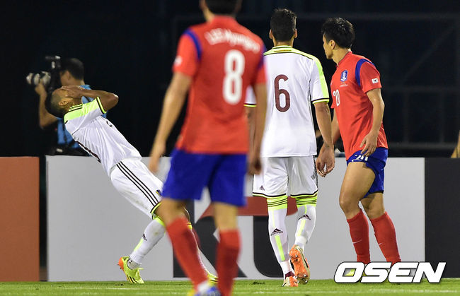 후반 한국 이동국이 베네수엘라 선수와 신경전을 벌이고 있다. /sunday@osen.co.kr