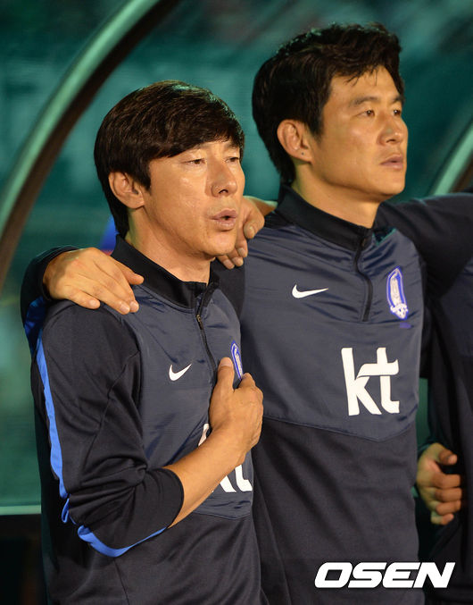 경기에 앞서 한국 신태용 코치가 애국가를 부르고 있다. /sunday@osen.co.kr