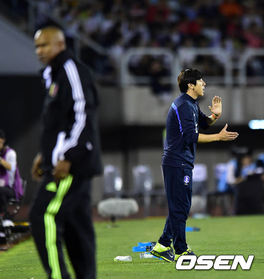 전반 한국 신태용 코치가 선수들에게 작전을 지시하고 있다. /sunday@osen.co.kr