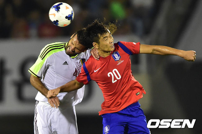 후반 한국 이동국이 상대 수비와 공중볼 다툼을 하고 있다. /sunday@osen.co.kr