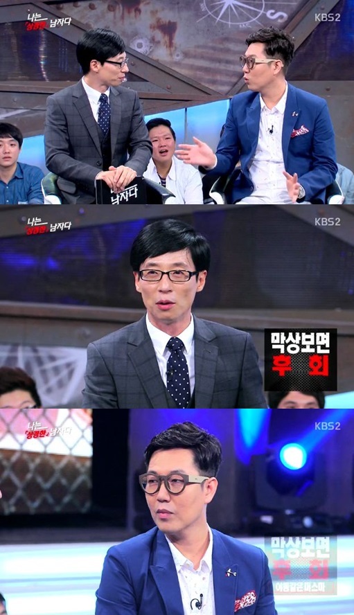 유재석은 5일 오후 11시 5분 방송된 KBS 2TV '나는 남자다'에서 김영철과 오랜만에 재회해 이같이 밝혔다.