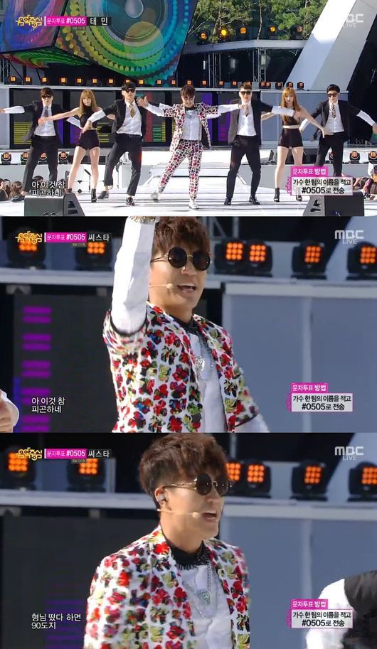 한편 이날 ‘쇼! 음악중심’은 형돈이와 대준이, 슈퍼주니어, 씨스타, 블락비, 카라, 김종민, 시크릿, 네스티네스티, 빅스, 오렌지캬라멜, 방탄소년단, 베스티, 써니힐, 하이포, EXID, 포틴, 라붐, JJCC가 출연했다.