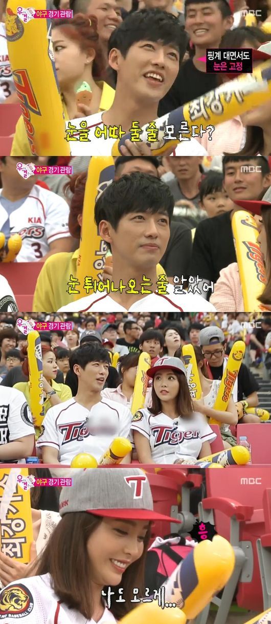 남궁민이 홍진영과 야구장 데이트를 하던 중에 치어리더에게 시선이 빼앗겼다.