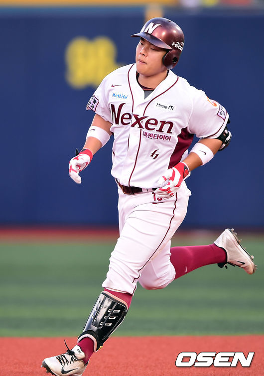 6일 오후 서울 목동구장에서 열린 '2014 한국야쿠르트 세븐 프로야구' 넥센 히어로즈와 롯데 자이언츠 경기, 4회말 2사 주자 없는 상황에서 넥센 윤석민이 솔로포를 날린 후 그라운드를 돌고 있다.
