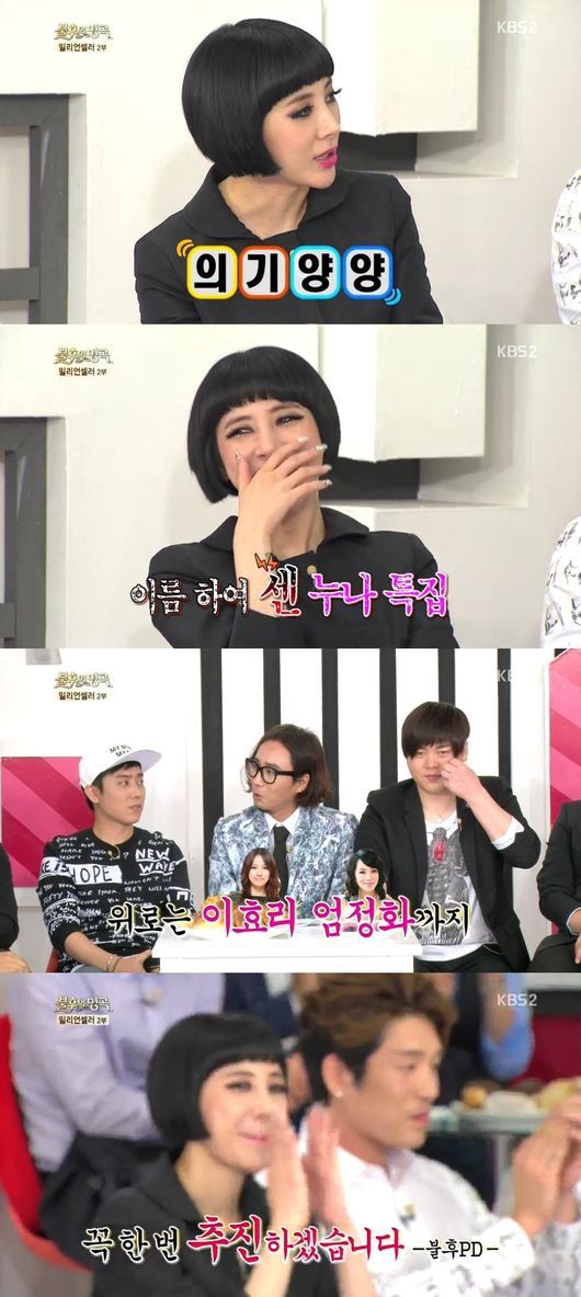 이에 문희준은 “개인적으로 바다씨와 붙었으면 좋겠다”고 제안을 했다. 이에 옴므는 “‘센 누나 특집’ 했으면 좋겠다”고 말했고, MC들은 “이효리, 엄정화까지 한 번 불러보면 좋겠다”, “피처링으로 조혜련-이경실도 부르자”고 농담을 하며 웃었다.