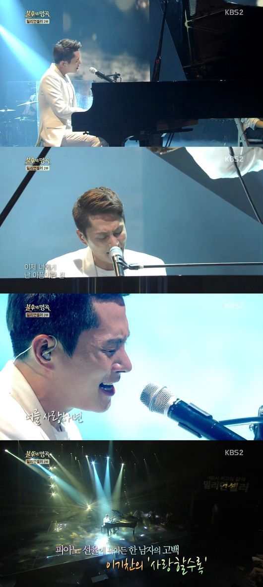 이날 네 번째 무대에 오른 이기찬은 부활의 ‘사랑할수록’ 무대를 선보였다. 피아노를 치면서 노래에 집중하는 그의 모습이 눈길을 끌었다. 느리면서도 깊이 있는 멜로디가 공연장을 가득 채웠고, 이기찬은 눈을 감고 감미로운 음악으로 고백을 전했다.