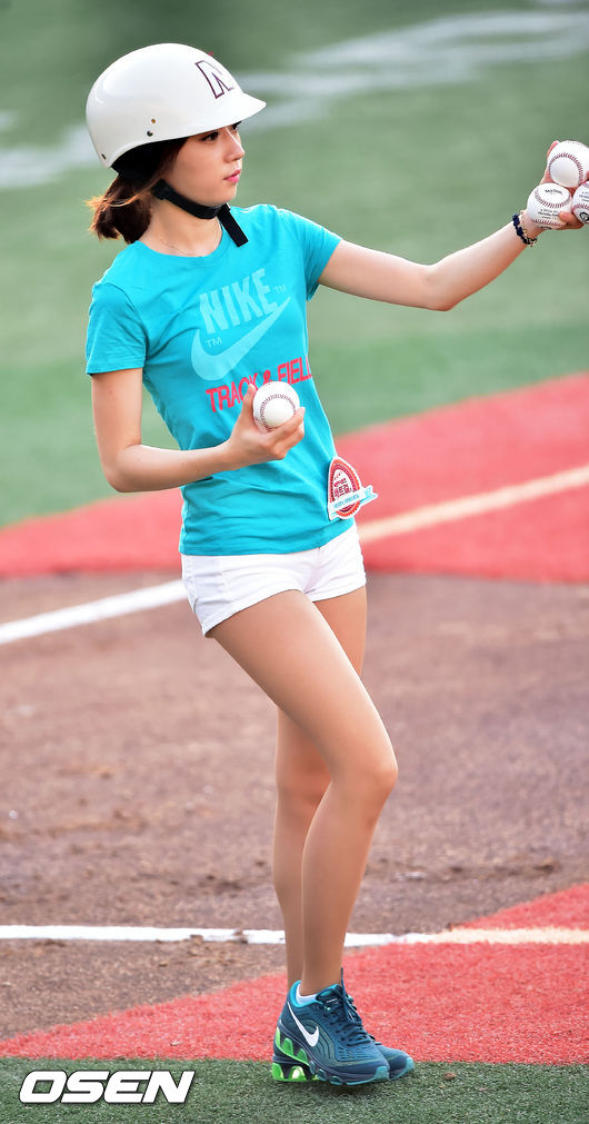 6일 오후 서울 목동구장에서 열린 '2014 한국야쿠르트 세븐 프로야구' 넥센 히어로즈와 롯데 자이언츠 경기, 넥센 배트걸 신슬아가 야구공을 운반하고 있다.
