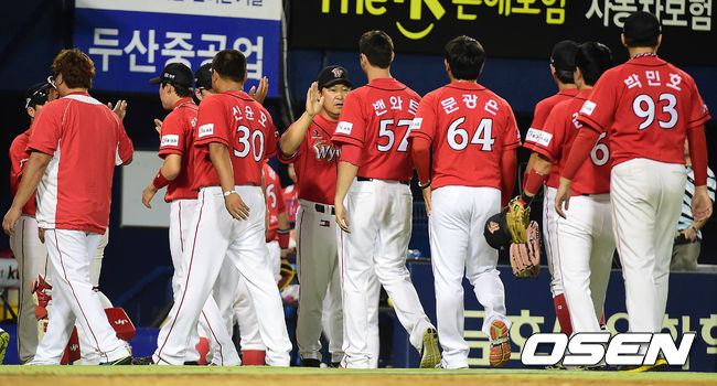SK 이만수 감독을 비롯한 코칭스태프가 승리투수가 된 벤와트를 비롯한 선수들과 인사를 나누고 있다./dreamer@osen.co.kr