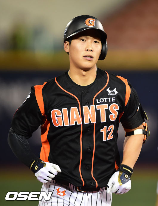 6일 오후 서울 목동구장에서 열린 '2014 한국야쿠르트 세븐 프로야구' 넥센 히어로즈와 롯데 자이언츠 경기, 9회초 2사 롯데 김민하가 좌월 솔로 홈런을 날린 후 그라운드를 돌고 있다.