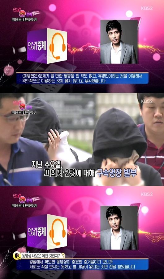 6일 방송된 KBS 2TV '연예가중계'에서는 지난 1일 전해진 배우 이병헌 사생활 유포 협박 사건을 취재했다.