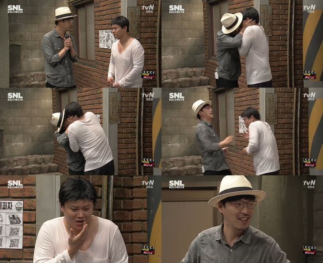 봉만대 감독은 6일 오후 방송된 tvN 'SNL 코리아'에 특별출연, 김민교에게 기습 키스를 해 눈길을 끌었다.
