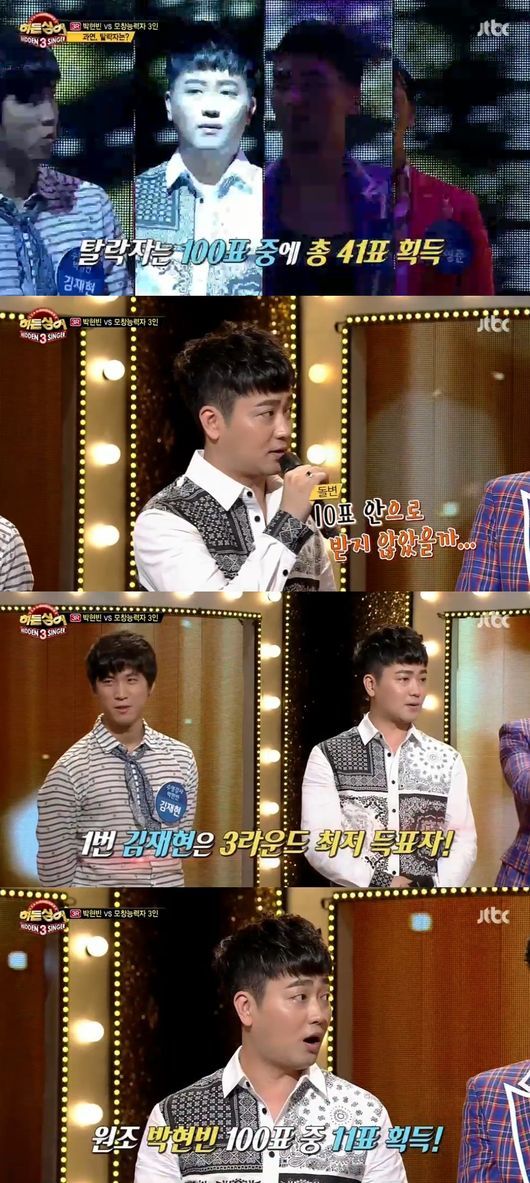 가수 박현빈이 ‘히든싱어3’ 2라운드에 이어 3라운드에도 최저 득표를 달성했다.