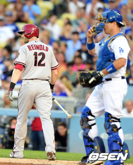 7일(이하 한국시간) 미국 로스엔젤레스 다저스타디움에서 열린 '2014 메이저리그' LA 다저스와 애리조나 다이아몬드백스의 경기,2회초 무사 만루 레이몰드가 류현진의 95마일 직구에 루킹삼진으로 물러나고 있다.