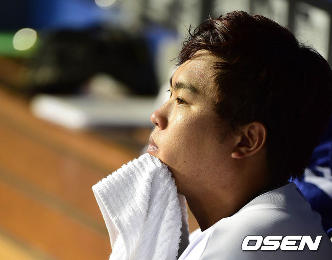 7회초 2사 3루서 폴락에게 동점타를 맞은 류현진이 마운드를 내려와 아쉬워 하고 있다./jpnews@osen.co.kr
