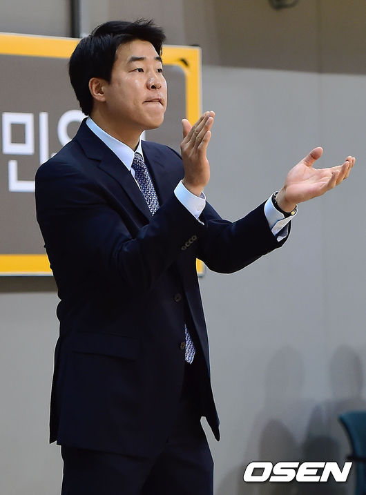7일 오후 서울 신촌 연세대체육관에서 열린 '2014 KB국민은행 대학농구리그 챔피언결정전' 3차전 경기, 연세대 은희석 감독이 선수들을 격려하고 있다.