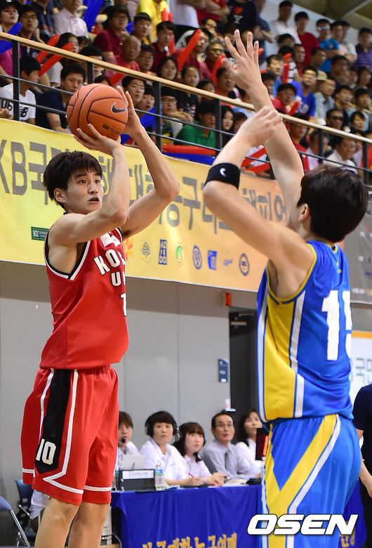7일 오후 서울 신촌 연세대체육관에서 열린 '2014 KB국민은행 대학농구리그 챔피언결정전' 3차전 경기, 1쿼터 고려대 문성곤이 점프슛을 시도하고 있다.