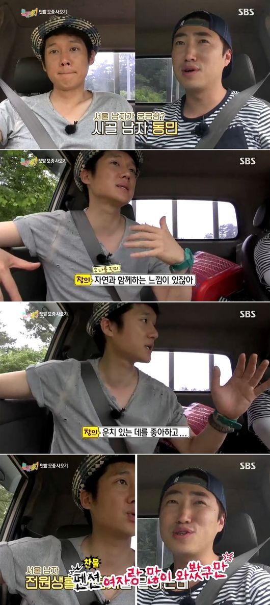 장동민은 7일 오후 방송된 SBS 예능프로그램 ‘에코빌리지 즐거운 家!’(이하 ‘즐거운 가’)에서 송창의와 함께 모종을 구하기 위해 함께 장터에 나갔다.