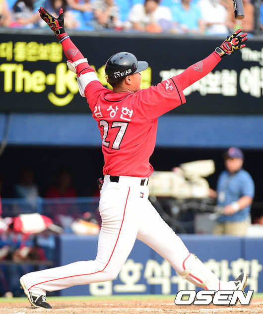 6회초 SK 공격 2사 만루 상황 김상현이 좌월 만루포를 날리고 있다.