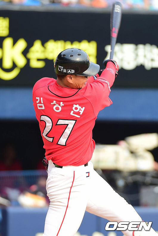 6회초 SK 공격 2사 만루 상황 김상현이 좌월 만루포를 날리고 있다.