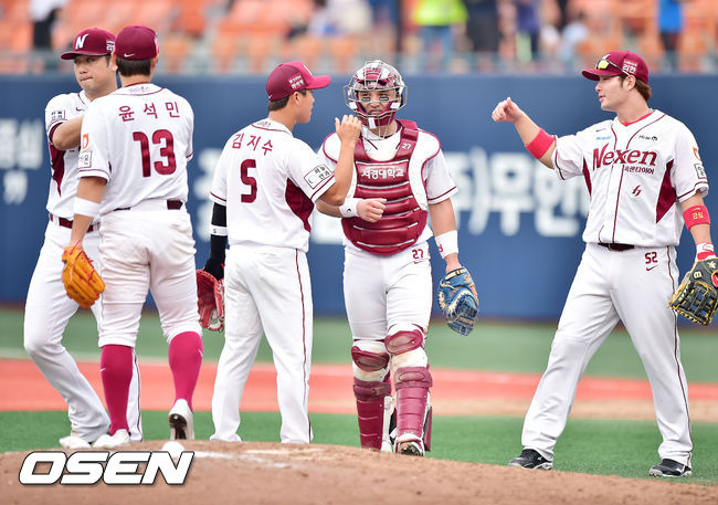 경기를 마치고 넥센 선수들이 마운드 근처에서 승리의 기쁨을 나누고 있다. / rumi@osen.co.kr