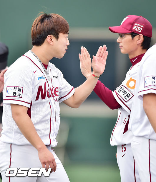 경기를 마치고 문성현이 염경엽 감독과 하이파이브를 하고 있다. / rumi@osen.co.kr